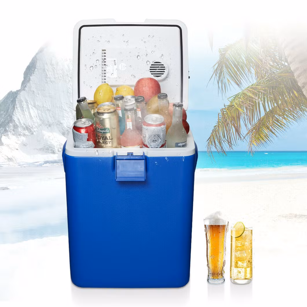 Diseño compacto y 30 litros de gran capacidad: Puede albergar hasta 40 latas de refrescos y puede albergar 5 botellas altas (2 litros) también. Nota: Sería mejor para la refrigeración añadir más cubitos de hielo antes de enchufar la alimentación.