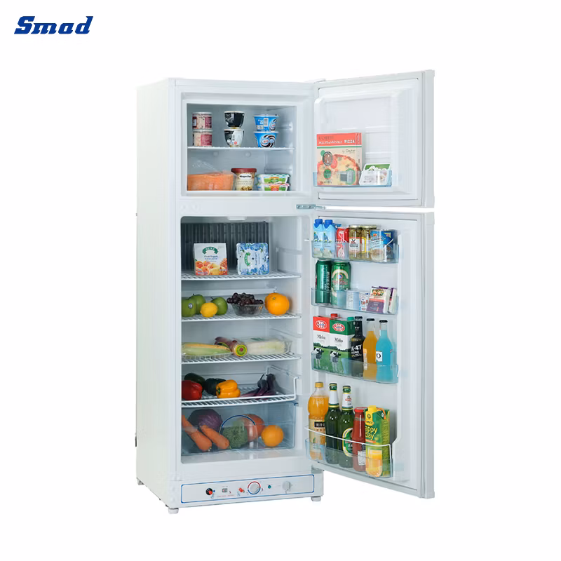 Móviles al aire libre mayorista de gas de gas doméstico el queroseno de 3 vías eléctricas Powered conservar los alimentos frescos en posición vertical de doble puerta de la absorción de la cocina nevera para la venta