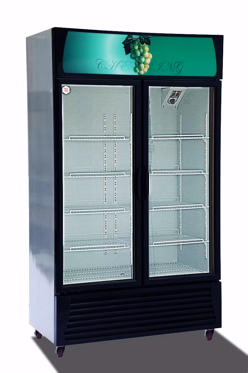 LG898A2 2- comercial de la puerta de cristal de la puerta del congelador vertical de color negro para el supermercado